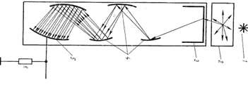 1-источник излучения, 2-сцинтилятор, 3-фотокатод, 4-диоды, 5-анод